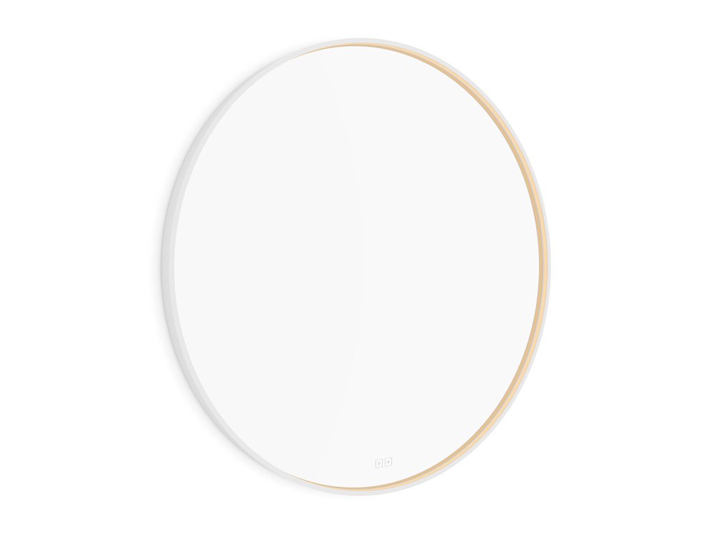Kulaté zrcadlo s rámem a s celoobvodovým svícením pro dokonalé a rovnoměrné osvětlení.Zrcadlo se ovládá dvěma dotykovými podsvícenými senzory, které umožňují změnu barvy světla, nastavení intenzity osvětlení (stmívání) a disponují paměťovou funkcí pro uložení posledního nastavení. Kromě toho lze zrcadlo ovládat i pomocí nástěnného vypínače, což zvyšuje jeho flexibilitu a pohodlí použití.