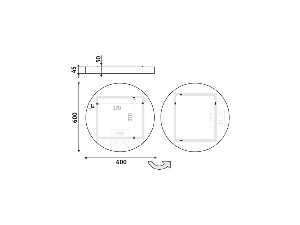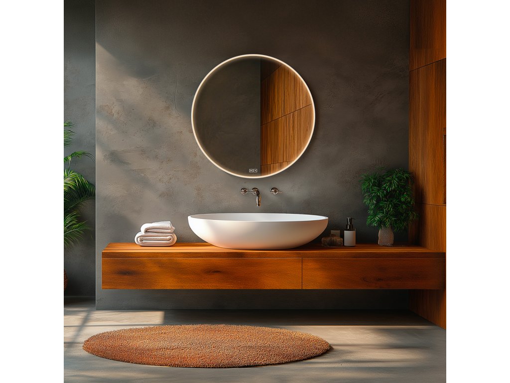 Kulaté zrcadlo s rámem a s celoobvodovým svícením pro dokonalé a rovnoměrné osvětlení.Zrcadlo se ovládá dvěma dotykovými podsvícenými senzory, které umožňují změnu barvy světla, nastavení intenzity osvětlení (stmívání) a disponují paměťovou funkcí pro uložení posledního nastavení. Kromě toho lze zrcadlo ovládat i pomocí nástěnného vypínače, což zvyšuje jeho flexibilitu a pohodlí použití.