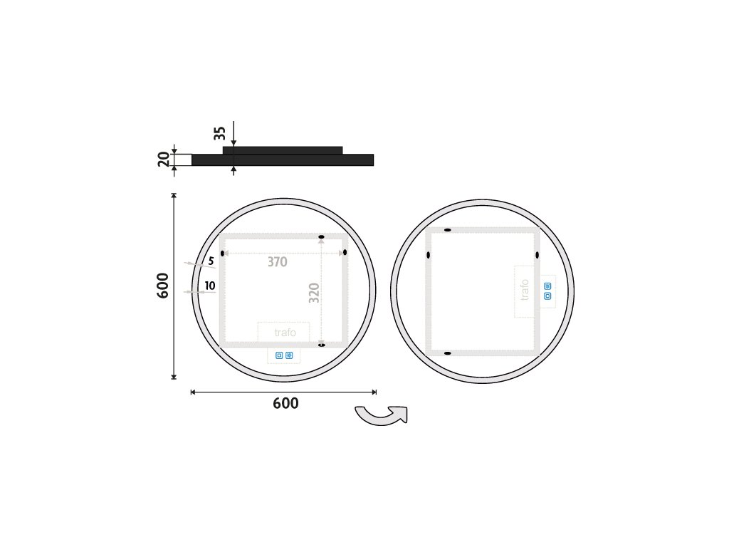 Kulaté zrcadlo s rámem a s celoobvodovým podsvícením pro dokonalé a rovnoměrné osvětlení.Zrcadlo se ovládá dvěma dotykovými podsvícenými senzory, které umožňují změnu barvy podsvícení, nastavení intenzity osvětlení (stmívání) a disponují paměťovou funkcí pro uložení posledního nastavení. Kromě toho lze zrcadlo ovládat i pomocí nástěnného vypínače, což zvyšuje jeho flexibilitu a pohodlí použití.