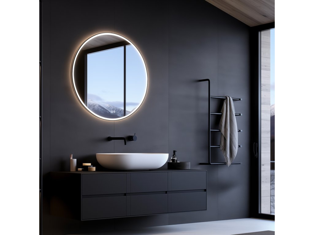 Černé kulaté LED zrcadlo pr. 700 mm se dvěma dotykovými senzory - ZPC 28001RVX-90