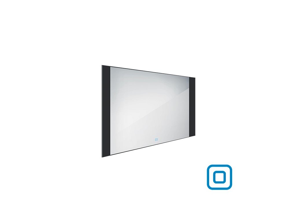 Černé zrcadlo do koupelny 100x60 s osvětlením, černým rámem, dotykový senzor je skvělým doplňkem do koupelny. Zrcadla do koupelny NIMCO vynikají kvalitním zpracováním a moderním designem. Zrcadlo o tloušťce 5 mm je zapuštěné do masivního černého matného rámu. Rám zrcadla je z hliníku. LED pásky jsou zabudované v liště z akrylového skla. Akrylové sklo lépe rozptyluje světlo a chrání Led diody před vlhkostí. Lišta je umístěna za rámem zrcadla. Světlo vychází do prostoru za zrcadlem a vytváří tak zajímavé ambientní svícení. Zapínání / vypínání / ovládání je pomocí dotykového senzoru s pamětí. Možnost nastavení barevné teploty svícení od studené bílé až po teplou bílou. Životnost LED diod je až 50 000 hodin. Ochrana IP 44. Připojení 220-240 V. Součástí zrcadla je kabelová spojka, IP 44.Koupelnové podsvícené LED zrcadlo