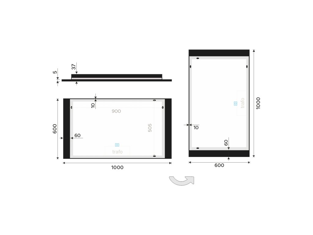 Černé LED zrcadlo 1000x600 s dotykovým senzorem - ZPC 41004V-90