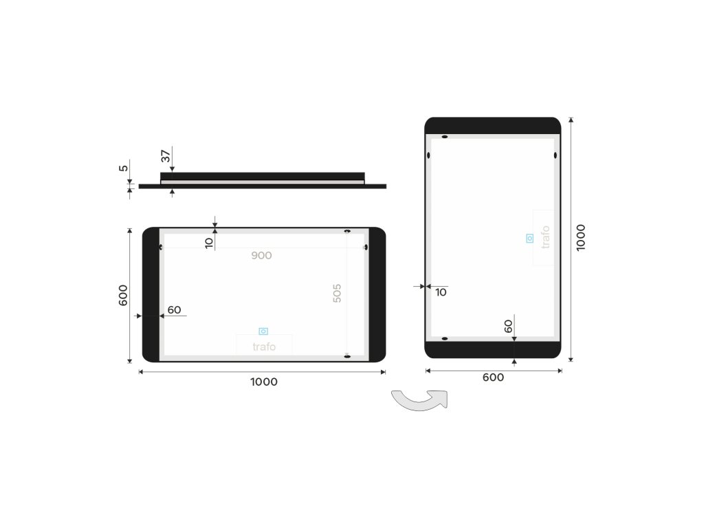 Černé LED zrcadlo 1000x600 s dotykovým senzorem - ZPC 42004V-90