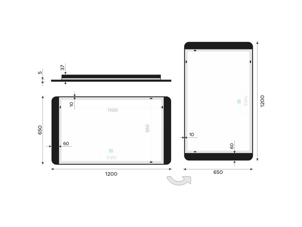 Černé LED zrcadlo 1200x650 s dotykovým senzorem - ZPC 42006V-90
