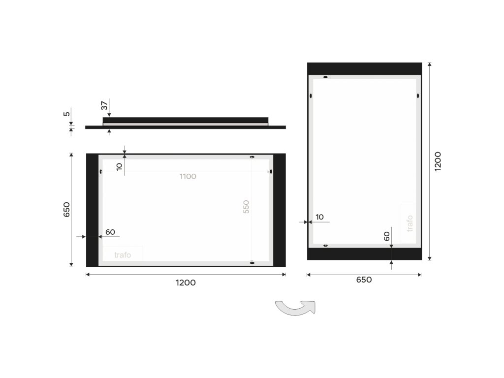 Obdélníkové zrcadlo s rámem s ostrými rohy a podsvícením ze spodu a shora pro rovnoměrné a stylové osvětlení.Zrcadlo bez integrovaného vypínače je určené k připojení a ovládání nástěnným vypínačem. Barva podsvícení zrcadla je pevně nastavena.