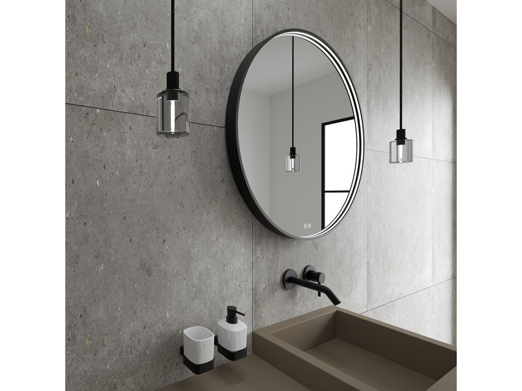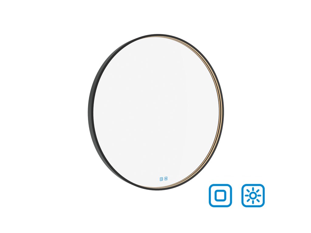Kulaté zrcadlo s rámem a s celoobvodovým svícením pro dokonalé a rovnoměrné osvětlení.Zrcadlo se ovládá dvěma dotykovými podsvícenými senzory, které umožňují změnu barvy světla, nastavení intenzity osvětlení (stmívání) a disponují paměťovou funkcí pro uložení posledního nastavení. Kromě toho lze zrcadlo ovládat i pomocí nástěnného vypínače, což zvyšuje jeho flexibilitu a pohodlí použití.