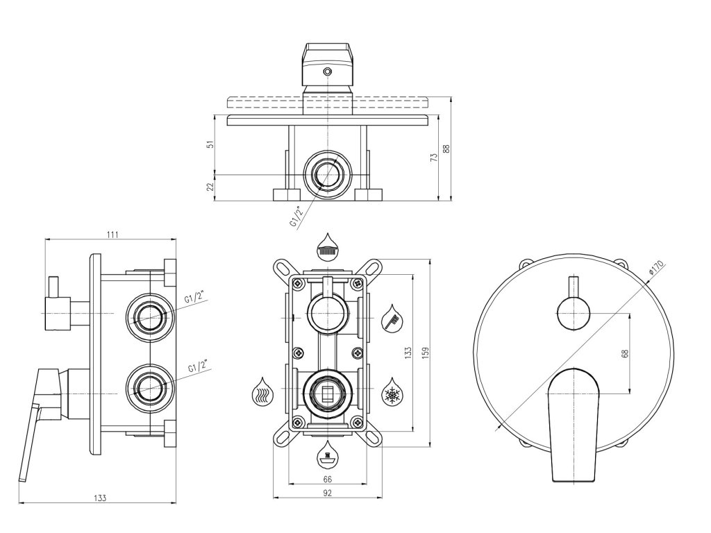 Tuto baterii můžete použít buď do sprchového koutu jako kombinaci tří prvků a nebo k vaně jako kombinaci např. napouštění přepadem, ruční sprcha a hlavová sprcha nebo výtokové ramínko, ruční sprcha a hlavová sprcha.
