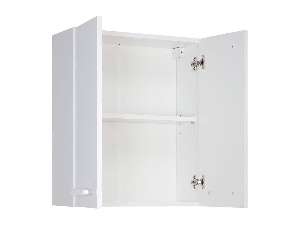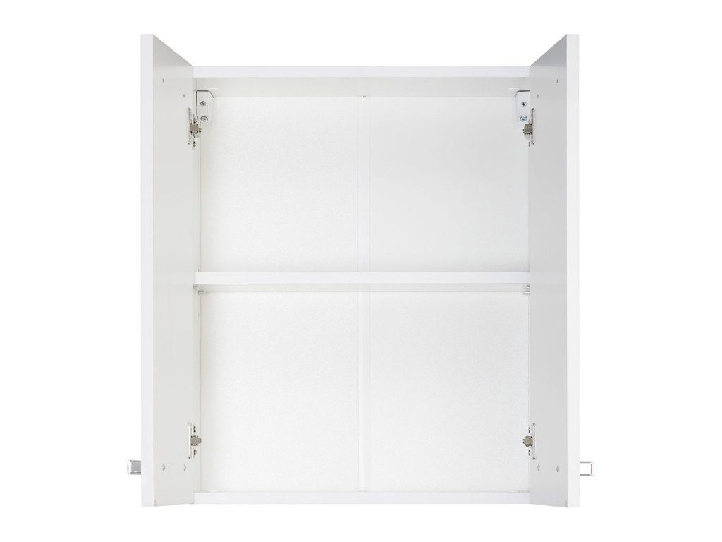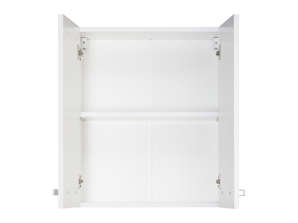 Korpus skříněk, čelní plochy a police jsou vyrobeny z LTD desky. Čela skříněk jsou lakované lesklým bílým lakem.