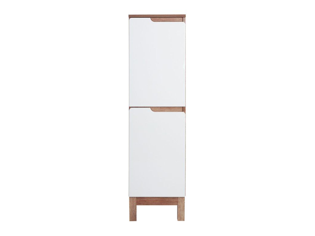 Korpus skříněk je z 16 mm LTD desky v dekoru Dub Country. Čela zásuvek s frézovanými úchyty jsou z MDF desky 16 mm s povrchovou úpravou lesklou fólií v bílé barvě. Nohy skříňky v dekoru Dub Country jsou vyrobeny z MDF desky 50 mm.
