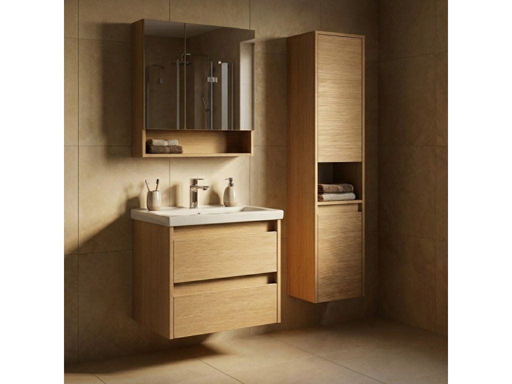 Série nábytku Arwood - nábytek do každé koupelny ve stále více populárním dekoru dřeva. Jednoduché tvary a design to je to hlavní, čím se vyznačuje tato série koupelnového nábytku. Skříňky jsou díky svým rozměrům vhodné i do malých koupelen, kde vytvoří i ke své velikosti dostatek úložného prostoru na ručníky či kosmetiku. Vybrat si můžete ze 3 šířek skříněk s umyvadlem (50, 60 a 80 cm) a doplnit je odpovídajícím rozměrem zrcadlové skříňky s praktickou otevřenou venkovní policí. Komplet umyvadlové a zrcadlové skříňky lze pak doplnit vysokou doplňkovou skříňkou. Všechny skříňky jsou vyrobeny v závěsném provedení. Pro zavěšení na stěnu jsou vybaveny rektifikačními závěsy.