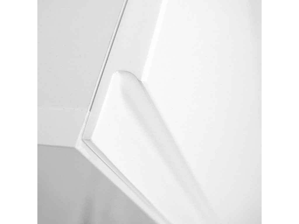 Korpus skříněk a vnitřní police jsou vyrobeny z LTD desky tloušťky 16 mm, čelní plochy a dvířka s frézovanými úchytkami pak z MDF desky v tloušťce mm. Celá skříňka je lakována bílým lakem do vysokého lesku.
