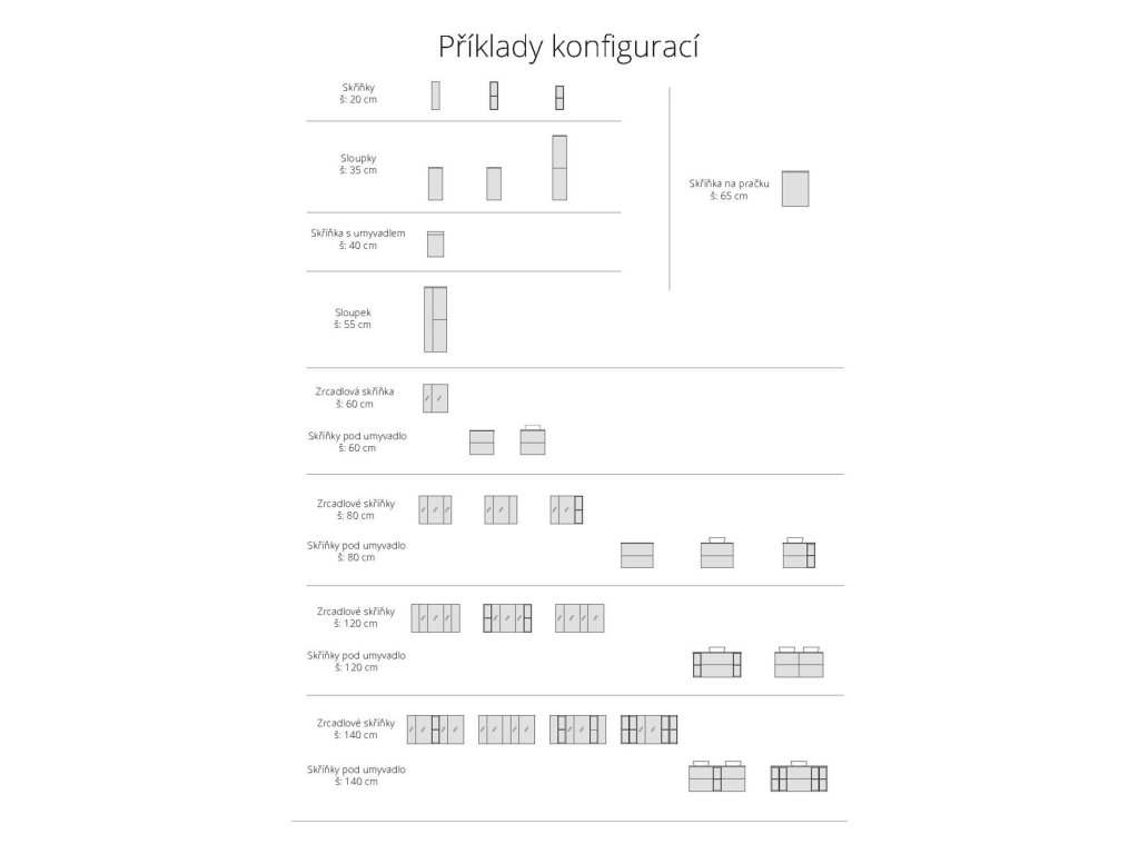 - modulové sestavení nábytku - jednoduché skládání skříněk do sestavy (v galerii obrázků jsou uvedeny příklady možných sestav)