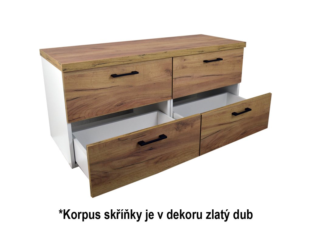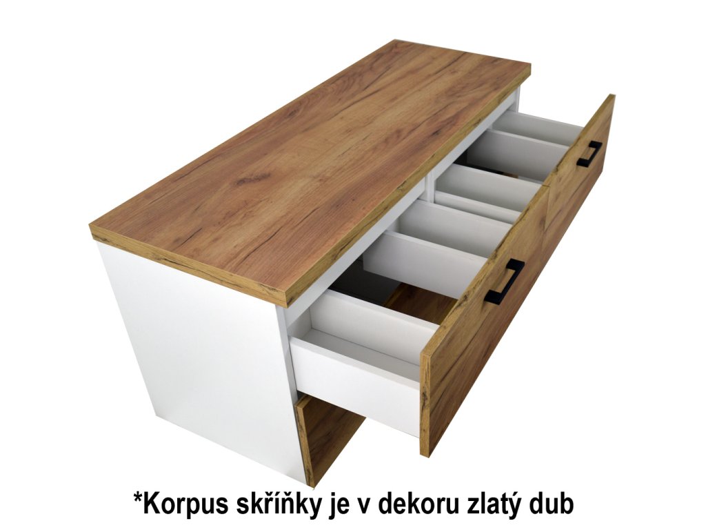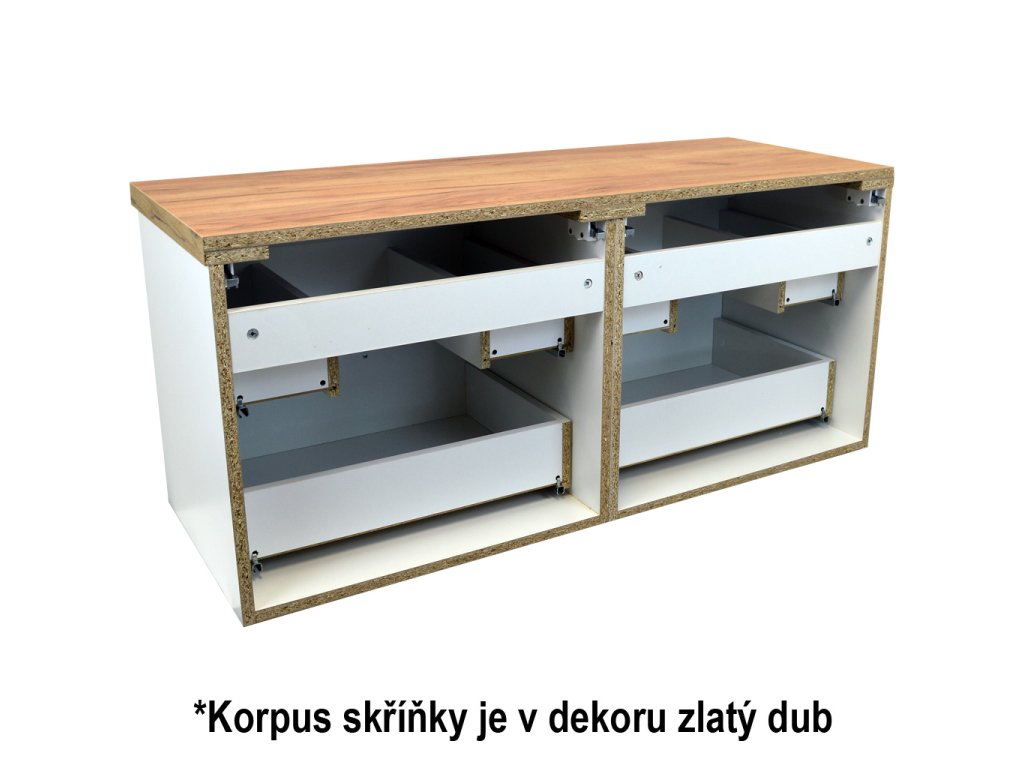 Korpus skříňky, čelní plochy a police jsou z LTD desky. Součástí skříňky je horní deska z LTD v dekoru zlatý dub na kterou lze instalovat libovolné deskové umyvadlo z naší nabídky.