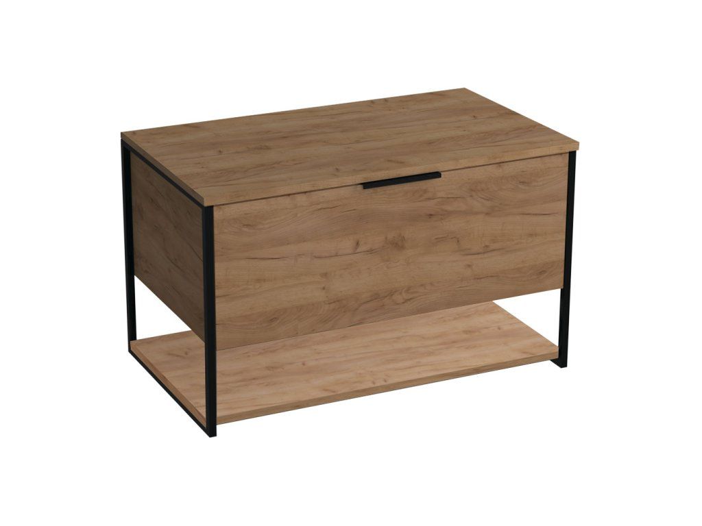 Základ skříněk je tvořen kovovou konstrukcí z tenkostěnných profilů v povrchové úpravě černým matným lakem. Samotný korpus skříňky, čelní plochy a police jsou z LTD desky v dekoru dub Gold Craft. Zásuvky a dvířka jsou doplněny kovovými úchytkami v povrchové úpravě černým matným lakem.