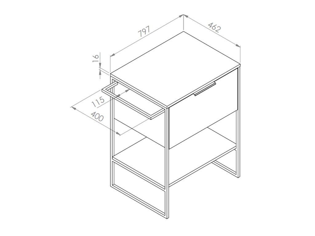 Základ skříněk je tvořen kovovou konstrukcí z tenkostěnných profilů v povrchové úpravě černým matným lakem. Samotný korpus skříňky, čelní plochy a police jsou z LTD desky v povrchové úpravě lesklým bílým lakem. Zásuvky a dvířka jsou doplněny kovovými úchytkami v povrchové úpravě černým matným lakem.