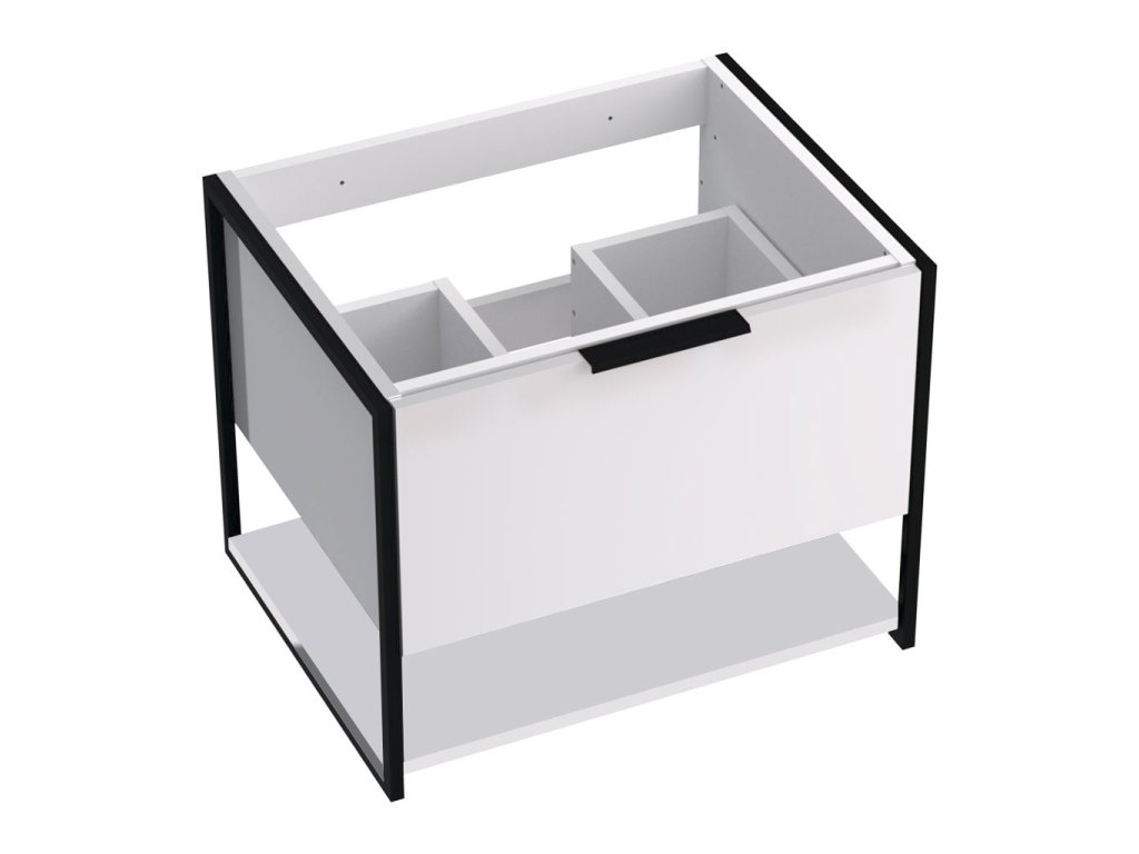 Základ skříněk je tvořen kovovou konstrukcí z tenkostěnných profilů v povrchové úpravě černým matným lakem. Samotný korpus skříňky, čelní plochy a police jsou z LTD desky v povrchové úpravě lesklým bílým lakem. Zásuvky a dvířka jsou doplněny kovovými úchytkami v povrchové úpravě černým matným lakem.