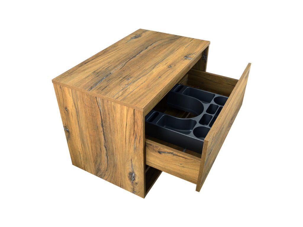 Skříňka pod deskové Mateo 75-HD je určena k zavěšení na zeď pomocí rektifikačních závěsů. Součástí skříňky je Horní deska z LTD desky BEZ výřezu pro umyvadlový sifon a montáž vodovodní baterie. Skříňku lze doplnit jakýmkoliv deskovým umyvadlem z naší nabídky (UMYVADLO NENÍ SOUČÁSTÍ SKŘÍŇKY). Praktickým doplňkem je plastový organizér umístěný zásuvce.