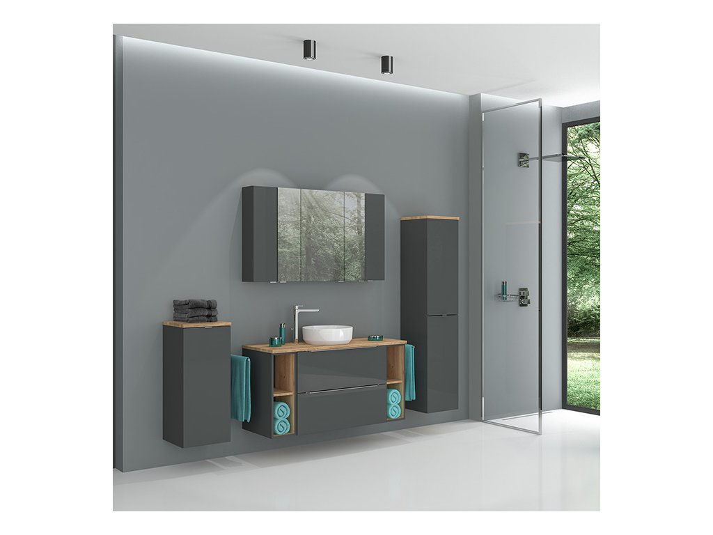 - samostatnou skříňku, nebo sestavu lze doplnit horní deskou, na kterou pak lze ustavit deskové umyvadlo. Horní desky se prodávají jako samostatný produkt a nabízíme je ve 3 barvách (bílá, antracit a Dub Country).