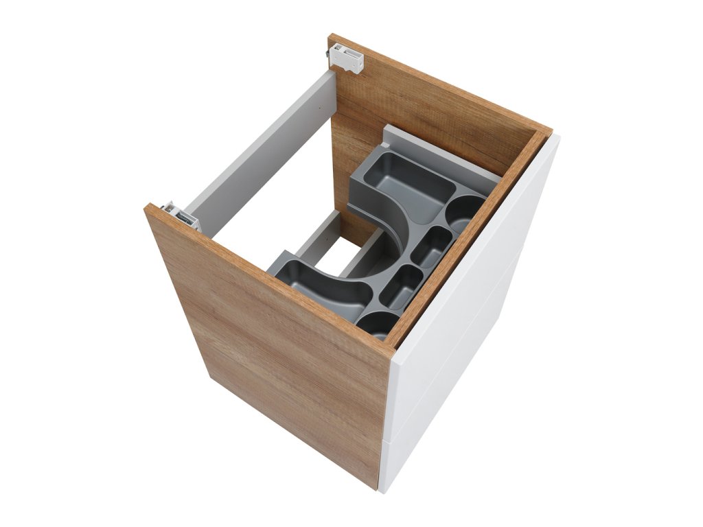 | Popis: | • moderní koupelnová skříňka pod umyvadlo či desku • 2x šuplík se softclose zavíráním - tiché a plynulé dovírání • horní zásuvka s výřezem pro umyvadlový sifón • kosmetický organizér umístěný v horním šuplíku • skříňka má rektifikační závěsy - snadné seřízení skříňky do roviny • kovové madla - chromované, černé a zlaté • příklady možných modulových sestav nábytku |