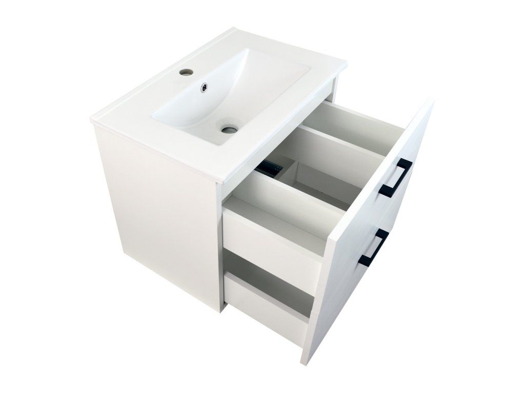 - koupelnová skříňka s keramickým umyvadlem UM-IHR 60 s přepadem a otvorem pro montáž vodovodní baterie (viz obrázek samostatného umyvadla v galerii)