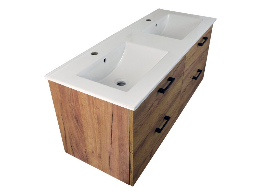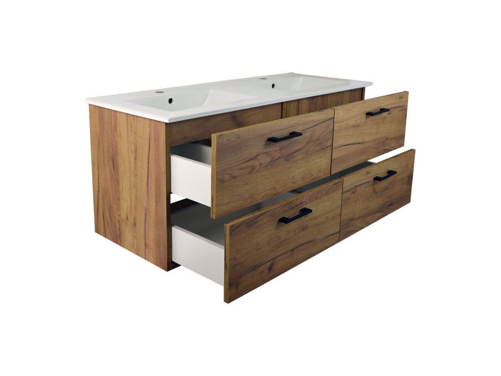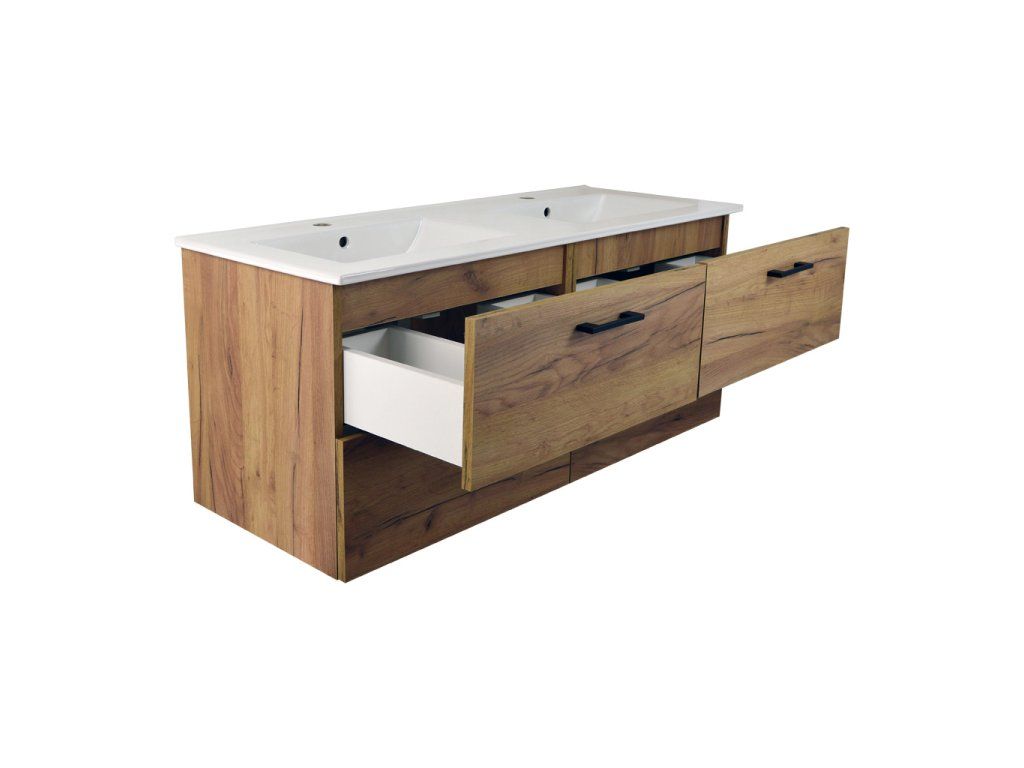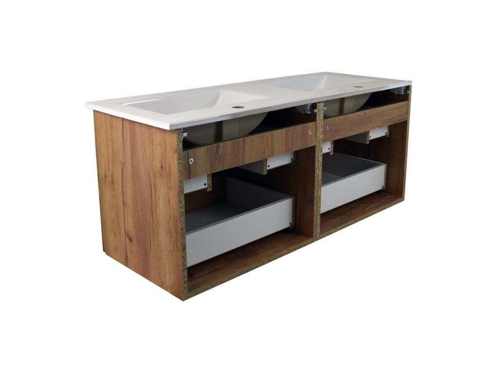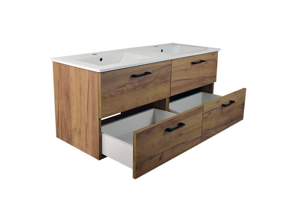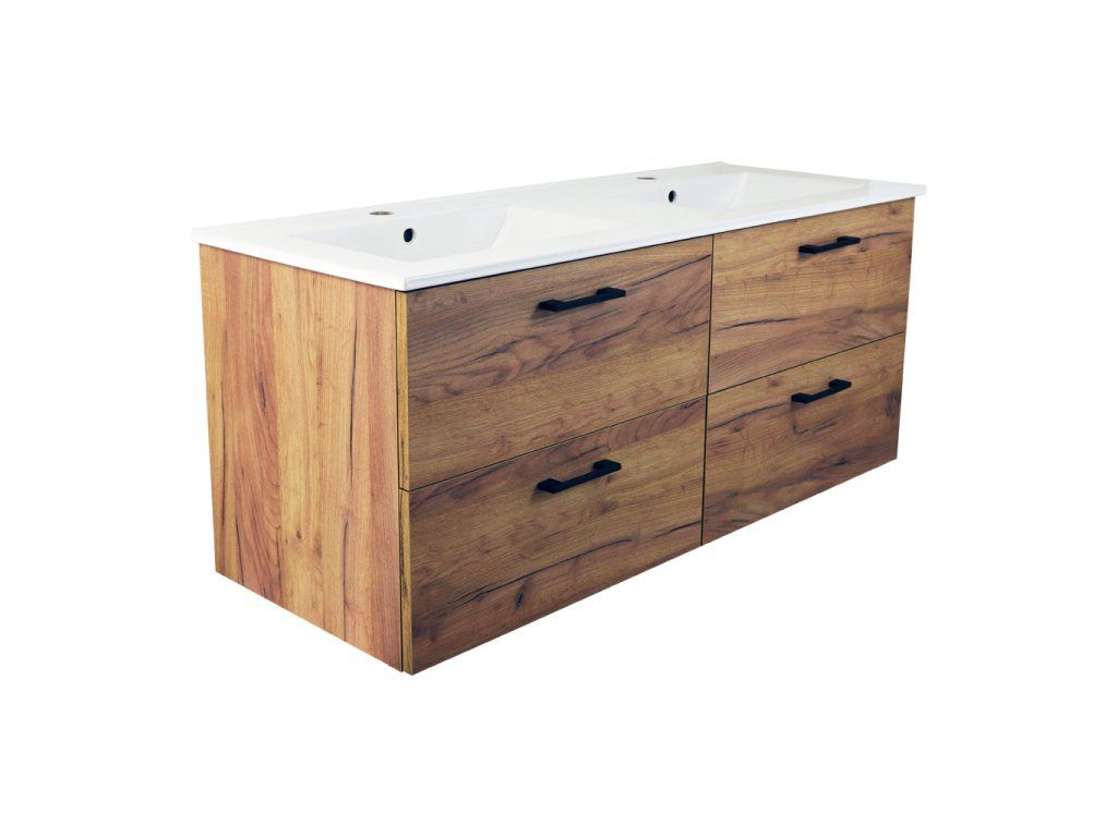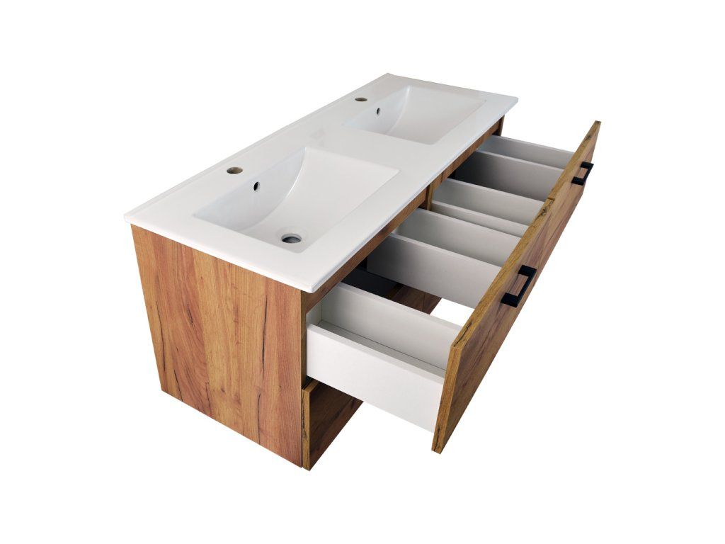 - koupelnová skříňka s keramickým dvojumyvadlem UM-ASU 120 s přepadem a otvory pro montáž vodovodních baterií