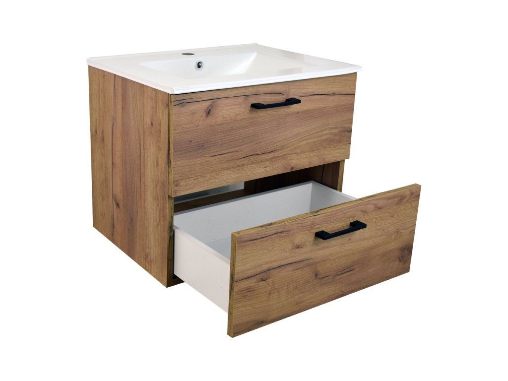 Koupelnová skříňka s keramickým umyvadlem Agria NEW GO 60 - zlatý dub