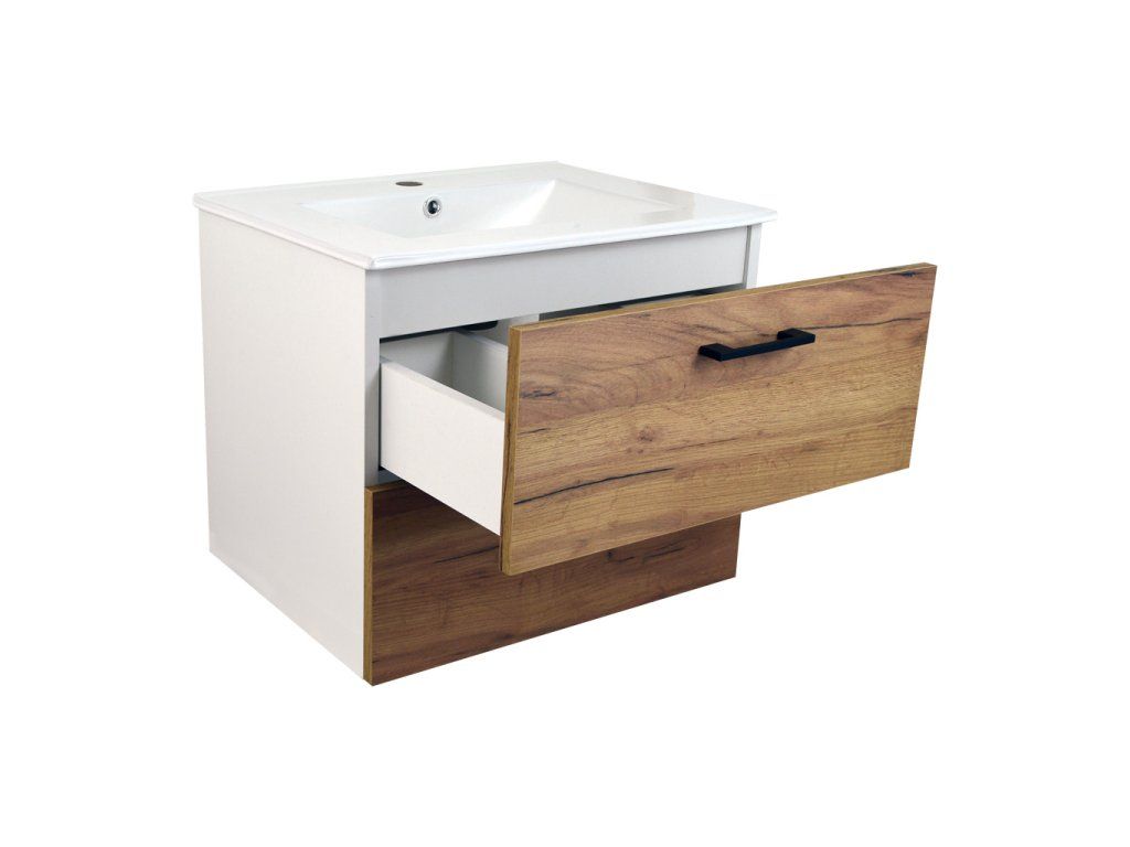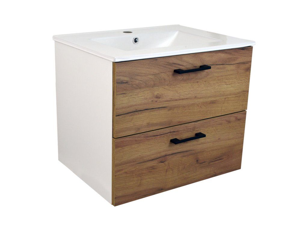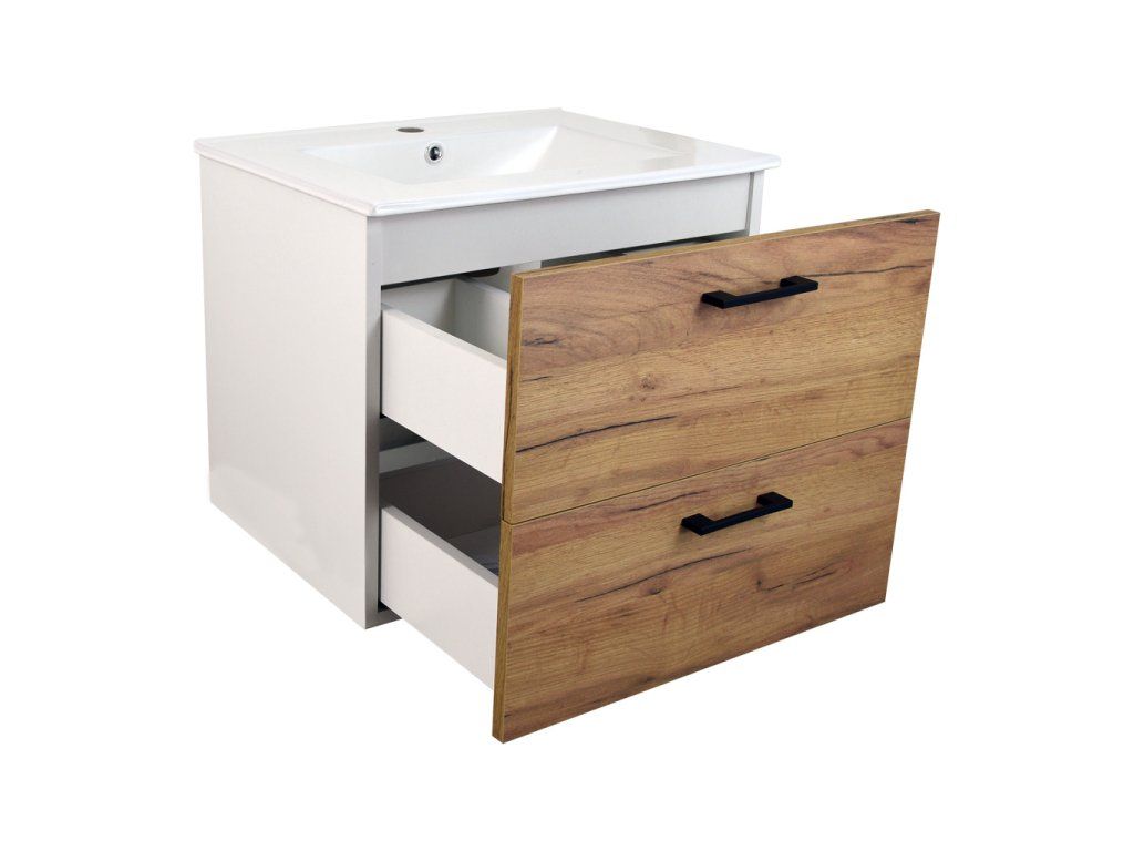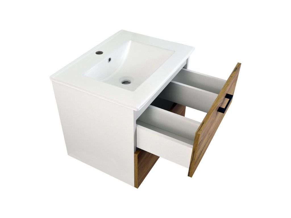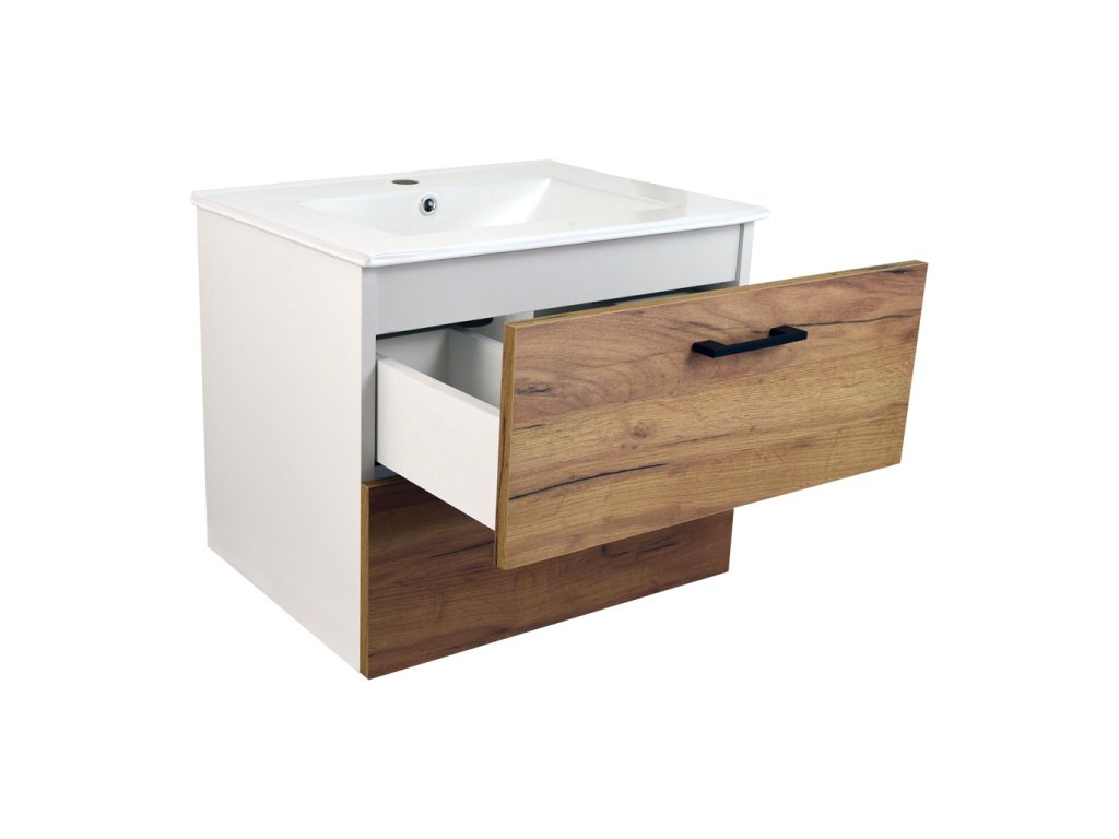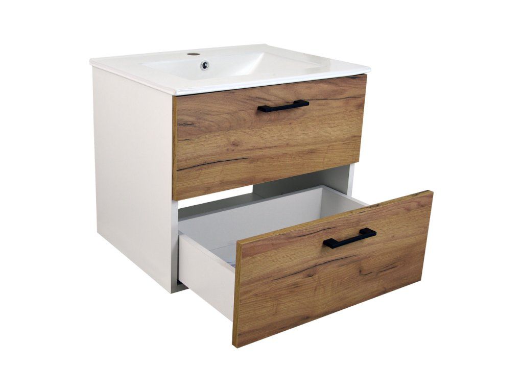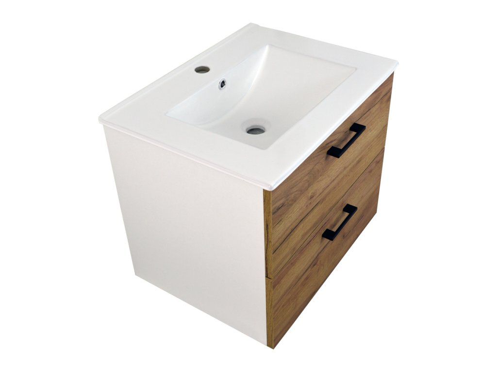 Koupelnová skříňka s keramickým umyvadlem Agria NEW W 60 - bílá/zlatý dub
