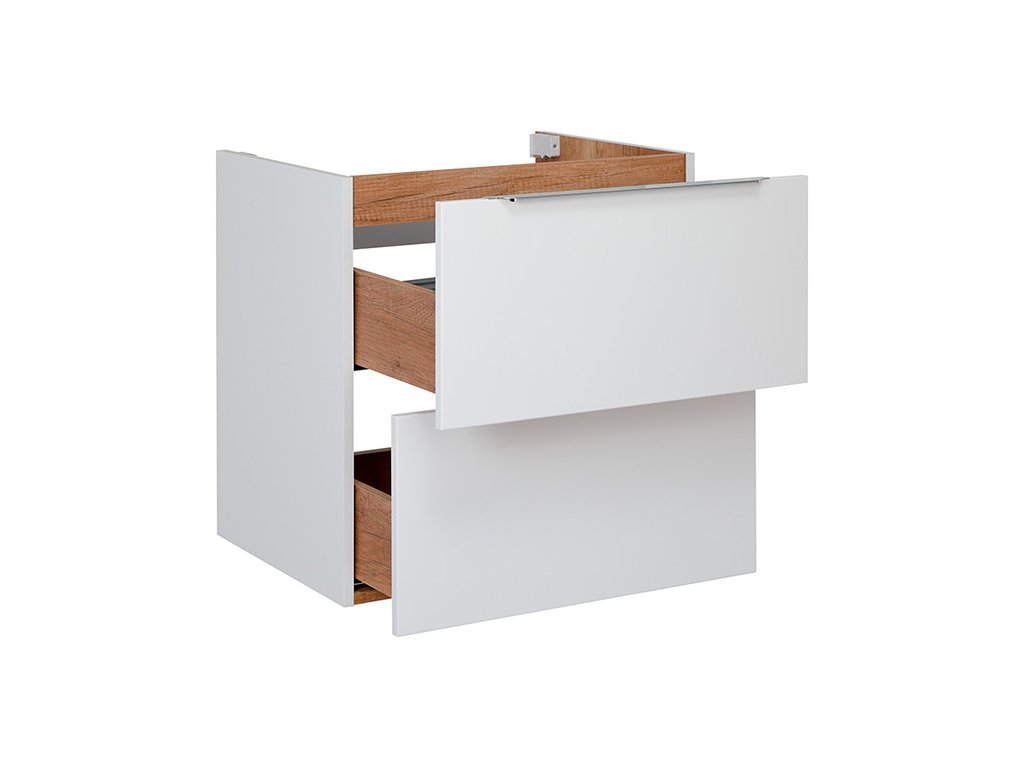 Koupelnová skříňka s keramickým umyvadlem Amanda 60 je určena k zavěšení na zeď pomocí rektifikačních závěsů.