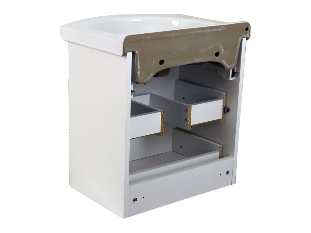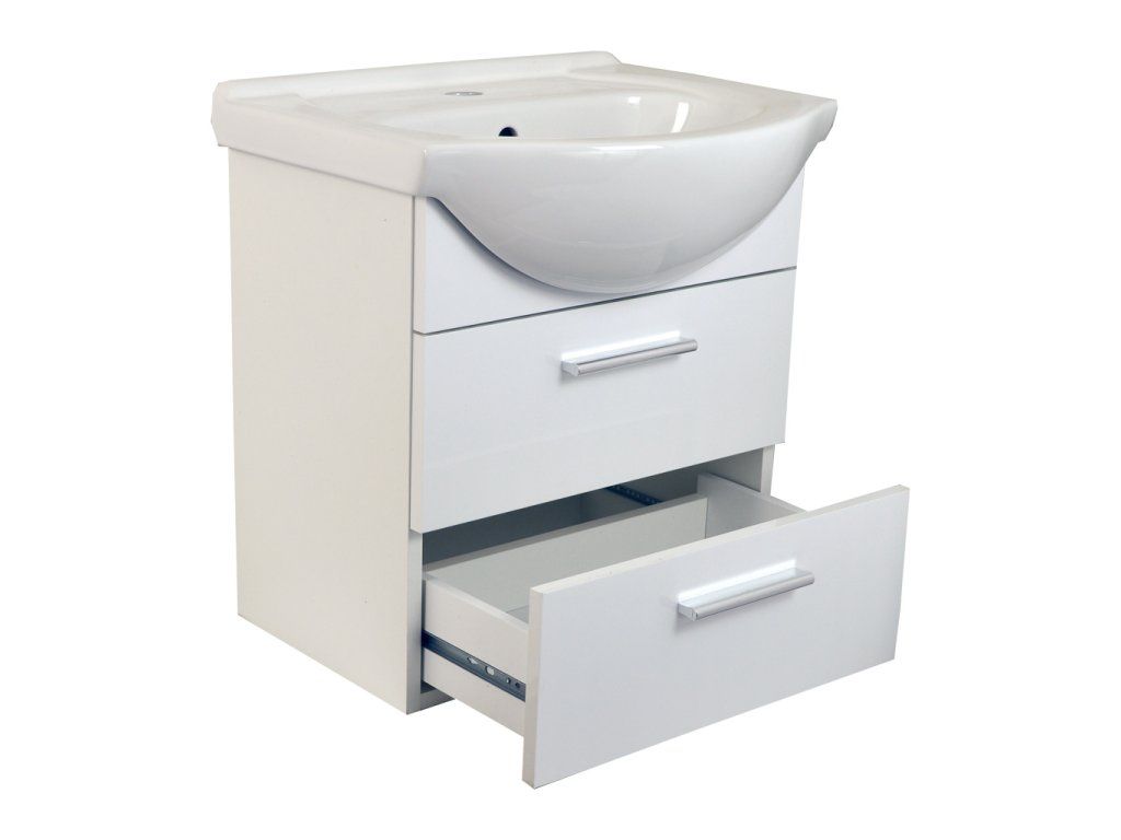 Skříňka s keramickým umyvadlem ASPIRE W 50 je určena k zavěšení na zeď pomocí rektifikačních závěsů. Součástí skříňky keramické umyvadlo Bahama 50 s přepadem a otvorem pro montáž vodovodní baterie.