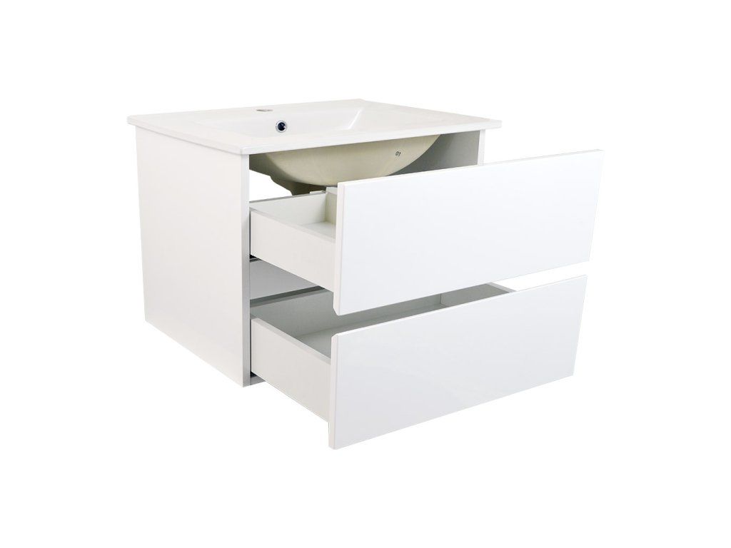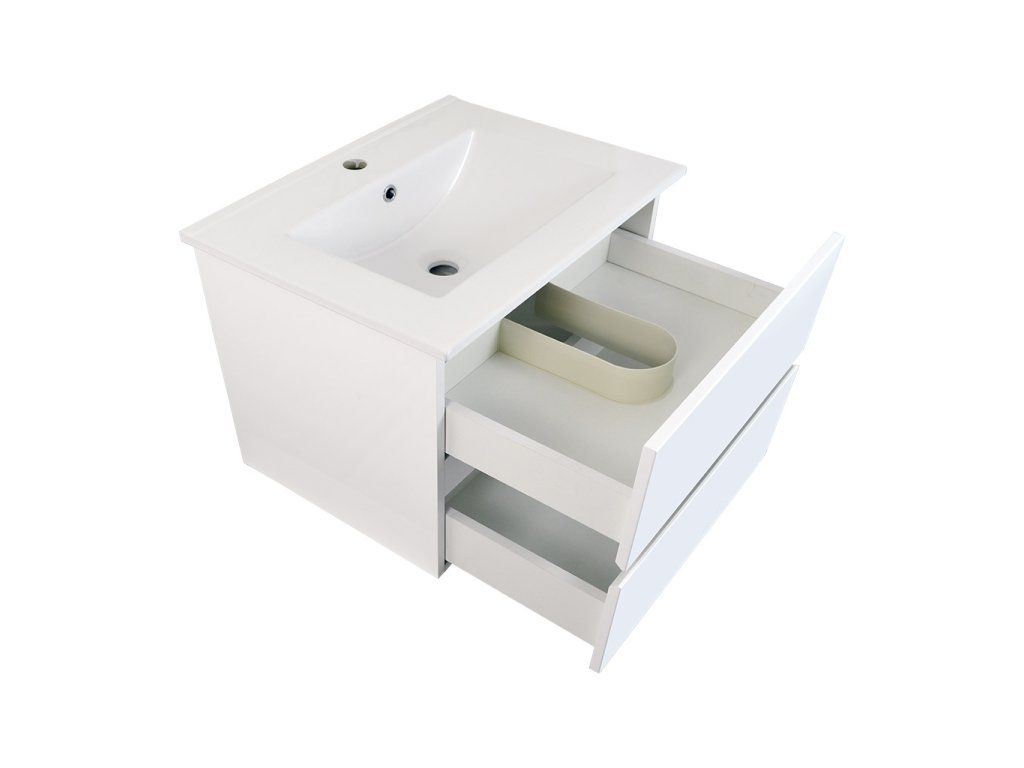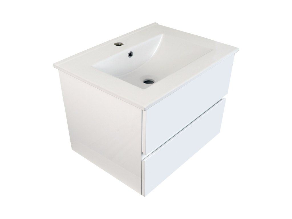Skříňka s keramickým umyvadlem Beneto 75 je určena k zavěšení na zeď pomocí rektifikačních závěsů. Je doplněna keramickým umyvadlem 75 cm s přepadem a otvorem pro montáž vodovodní baterie.