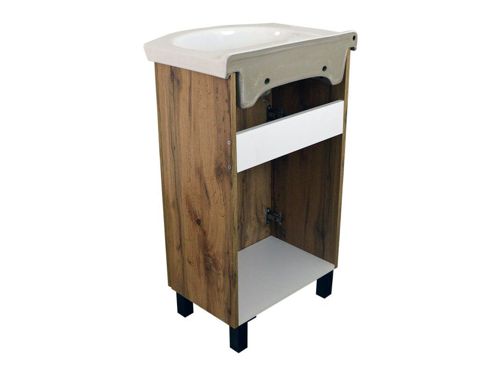 Skříňka s keramickým umyvadlem Eden OW 50 je velmi praktický, ale hlavně moderní nábytek v dekoru dřeva do každé koupelny. Jednoduché tvary a design to je to hlavní, čím se tato skříňka vyznačuje. Díky svým rozměrům je vhodná i do malých koupelen, kde vytvoří, i ke své velikosti, dostatek úložného prostoru na ručníky či kosmetiku.