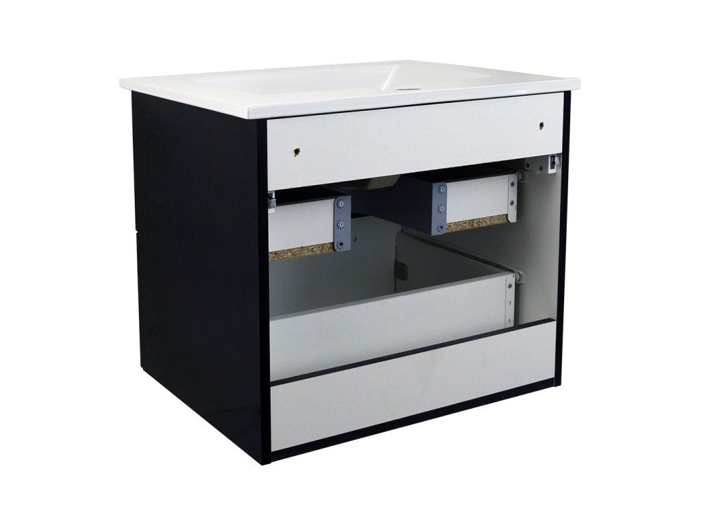 Skříňka s keramickým umyvadlem Emilio B 60 je určena k zavěšení na zeď pomocí rektifikačních závěsů. Součástí skříňky keramické umyvadlo UM-ASU 60 s otvorem pro montáž vodovodní baterie a přepadem.