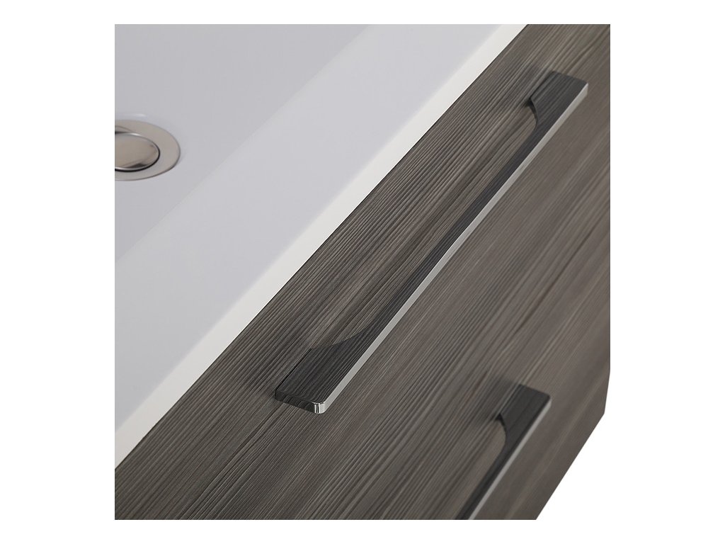 Korpus skříněk je z 16 mm LTD desky v dekoru modřín grafit. Čelní plochy s oblými hranami jsou z MDF desky 22 mm, potaženy fólií v dekoru modřín grafit.