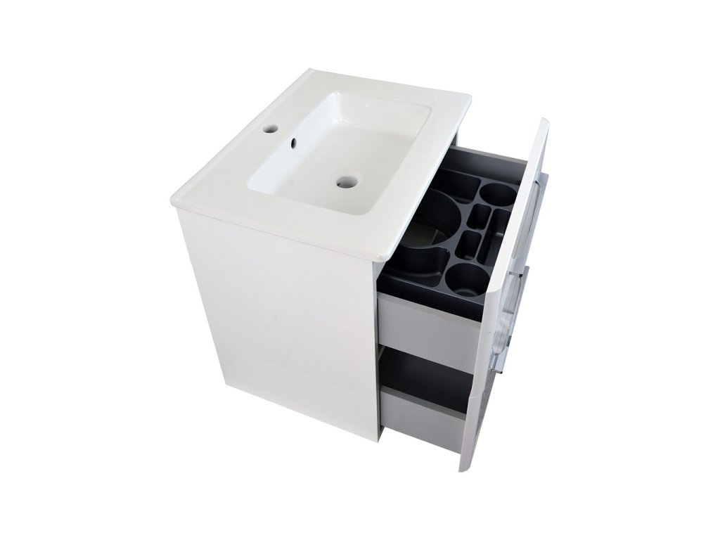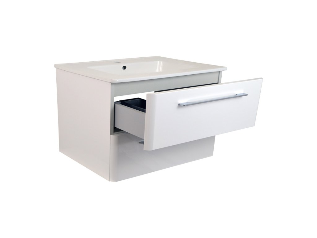 Série nábytku Gary. Leské bílé linie této kolekce koupelnového nábytku budou ozdobou každé moderní koupelny.