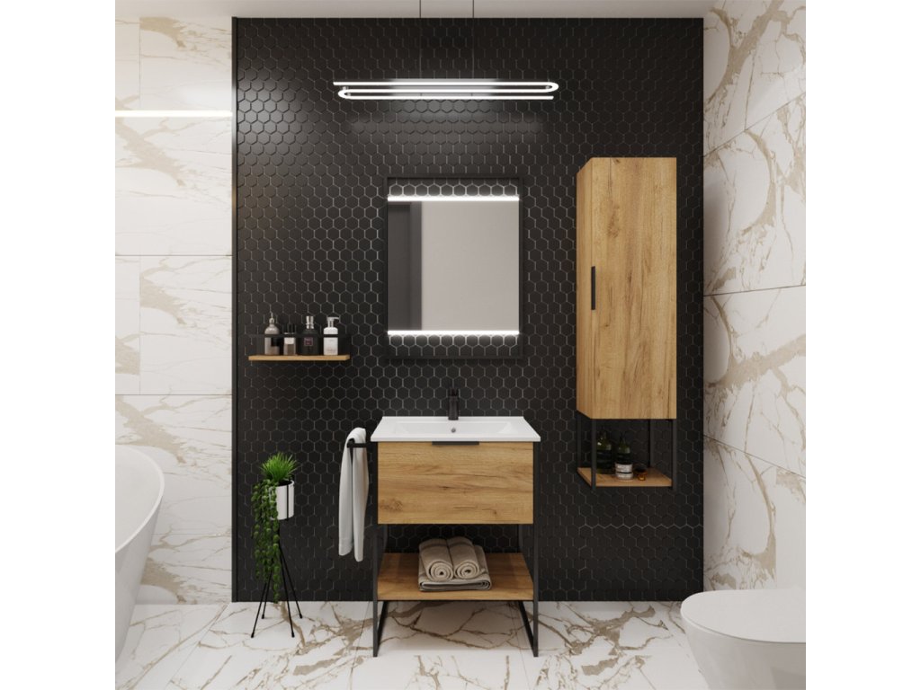 Série nábytku Kubus. Koupelnové skříňky v moderním industriálním stylu. Lehké, vzdušné a přesto dokonale funkční. Jednoduché tvary a moderní design to je to hlavní, čím se vyznačuje tato série koupelnového nábytku v elegantní kombinaci strohého industriálního kovu s výplněmi v dekoru dřeva.