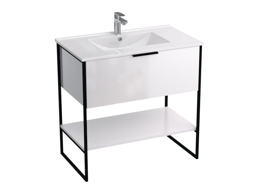 Skříňka s keramickým umyvadlem Kubus W 80 je určena k postavení na podlahu. Součástí skříňky je keramické umyvadlo UM-ASU 80 s přepadem a otvorem pro montáž vodovodní baterie.