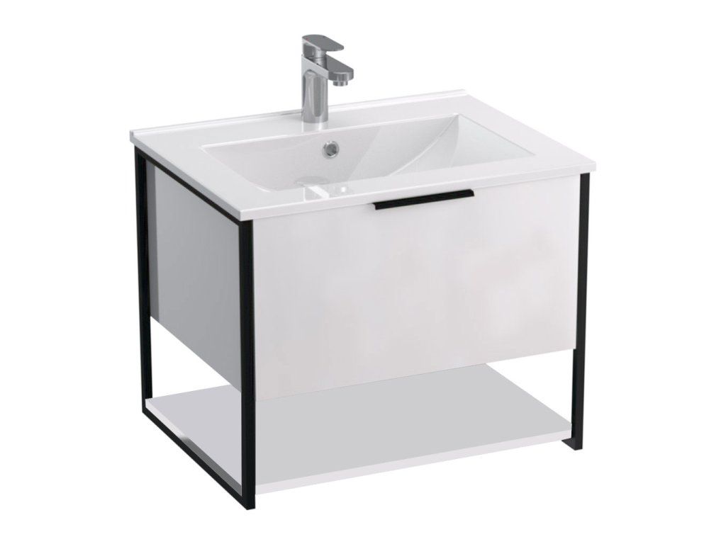 Skříňka s keramickým umyvadlem Kubus W ZV 60 je určena k zavěšení na zeď. Součástí skříňky je keramické umyvadlo UM-ASU 60 s přepadem a otvorem pro montáž vodovodní baterie.