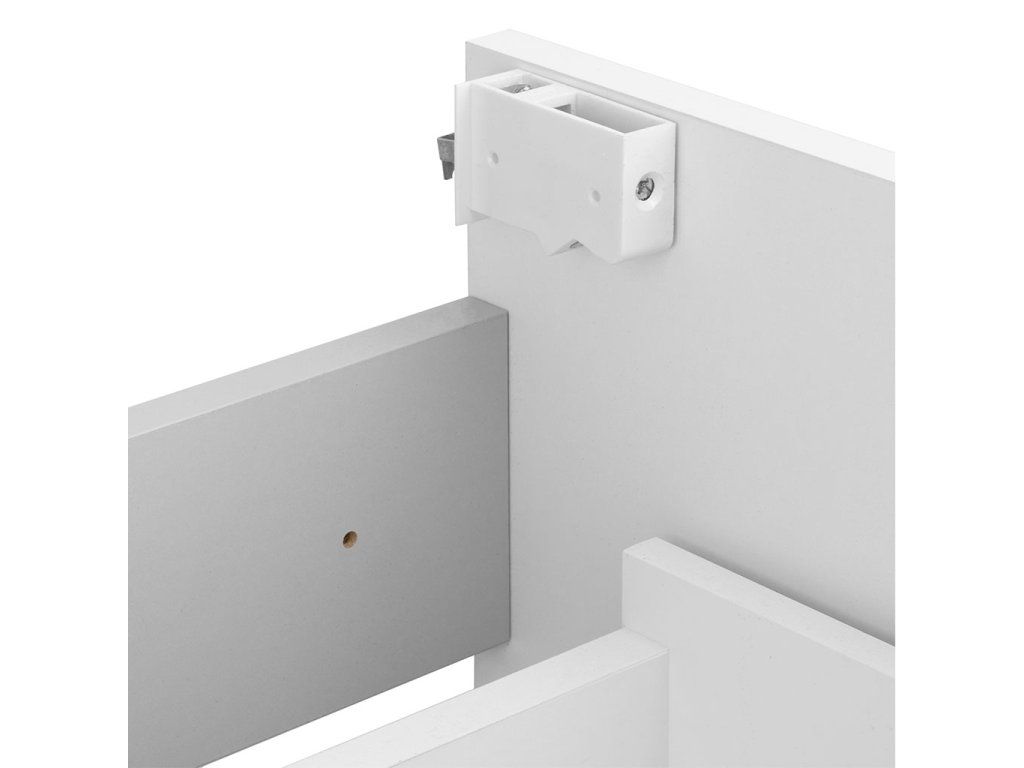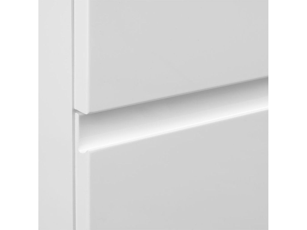 Korpus skříněk a vnitřní police jsou vyrobeny z LTD desky tloušťky 16 mm, čelní plochy a dvířka s frézovanými úchytkami pak z MDF desky v tloušťce mm. Celá skříňka je lakována bílým lakem do vysokého lesku.