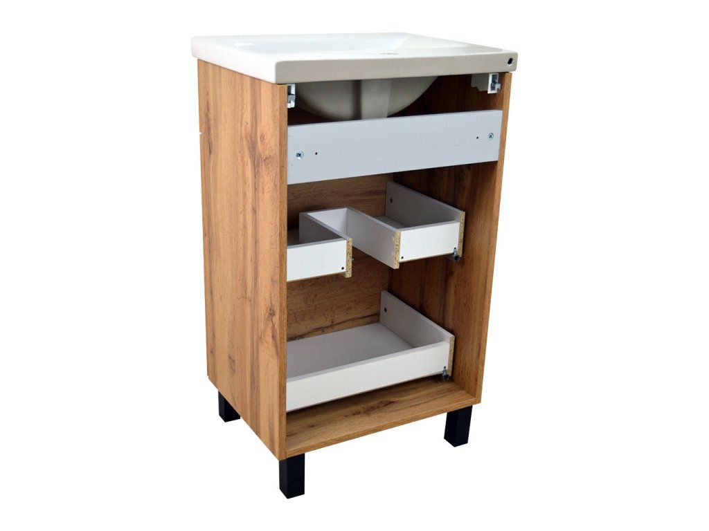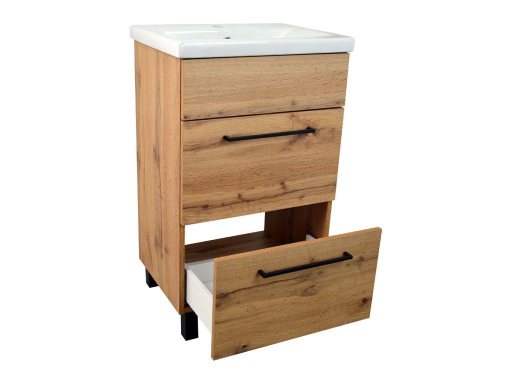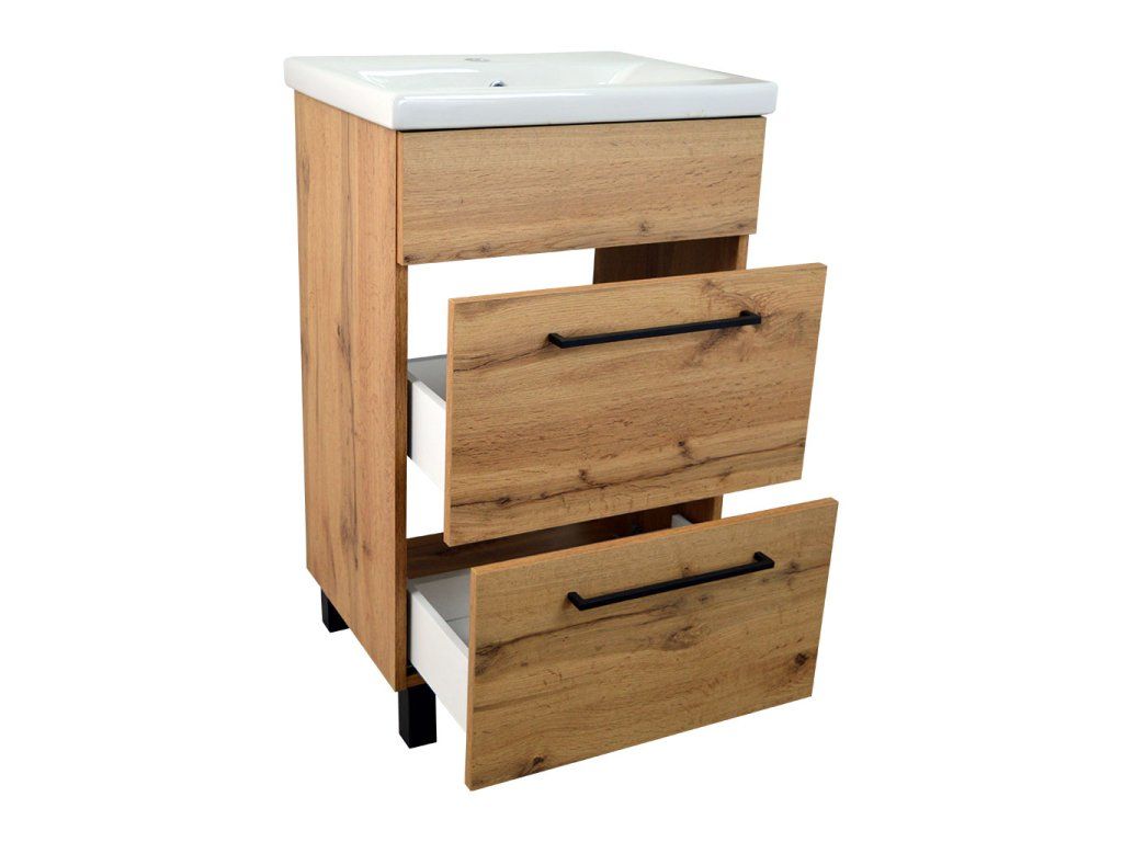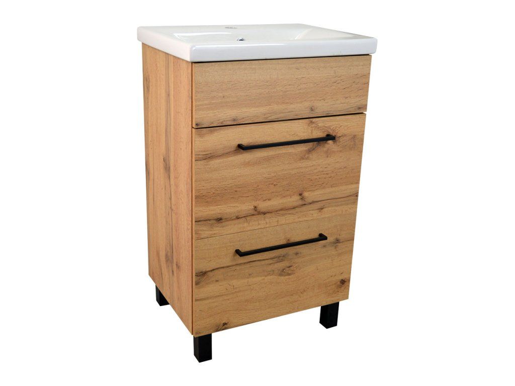 Koupelnová skříňka s keramickým umyvadlem Solero OW 50, dub wotan