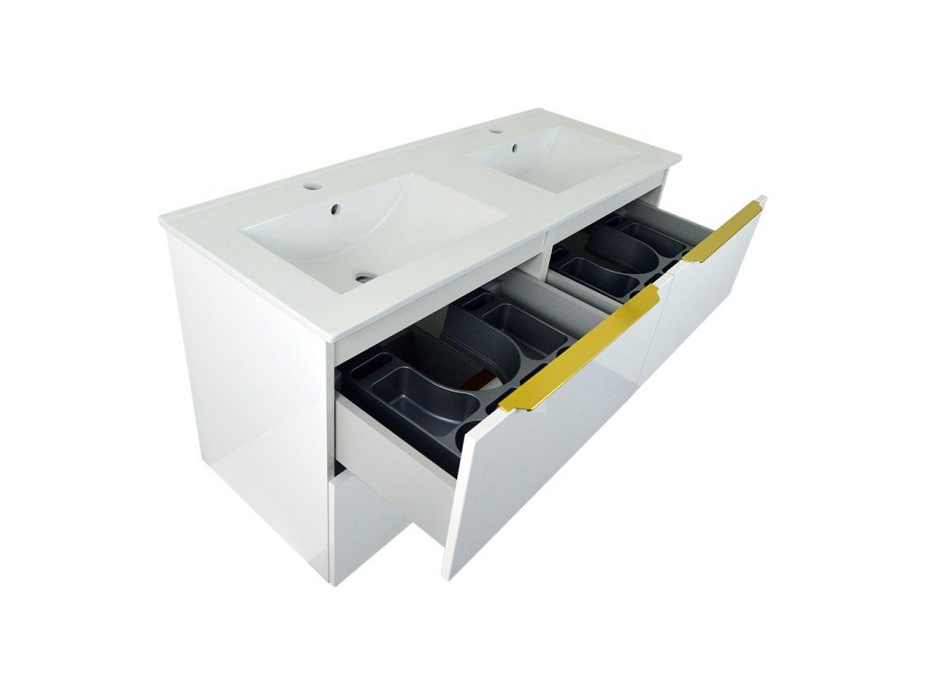| Příslušenství: | •na výběr jsou chromované, černé či zlaté madla • keramické umyvadlo UM-ASU 120 rozměry umyvadla (š x v x hl): 1215 x 170 x 470 mm |