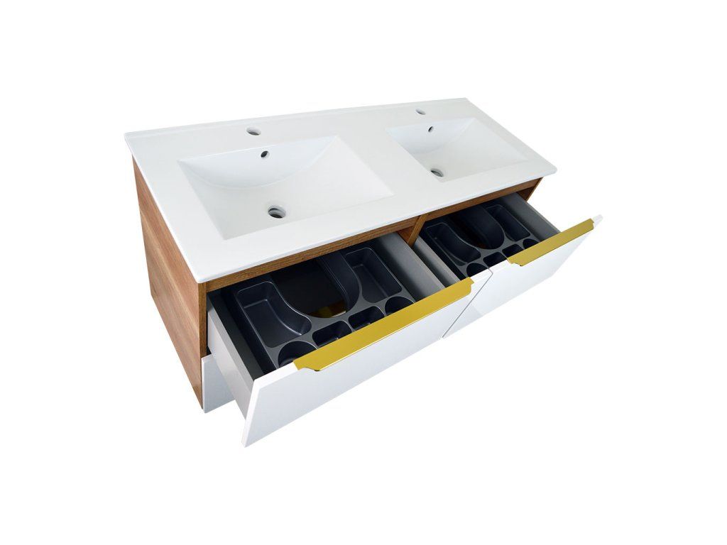 | Příslušenství: | •na výběr jsou chromované, černé či zlaté madla • keramické umyvadlo UM-ASU 120 rozměry umyvadla (š x v x hl): 1215 x 170 x 470 mm |