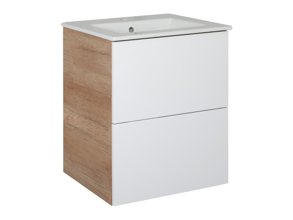 Koupelnová skříňka s keramickým umyvadlem Swing WOC 50, bílá/dub country