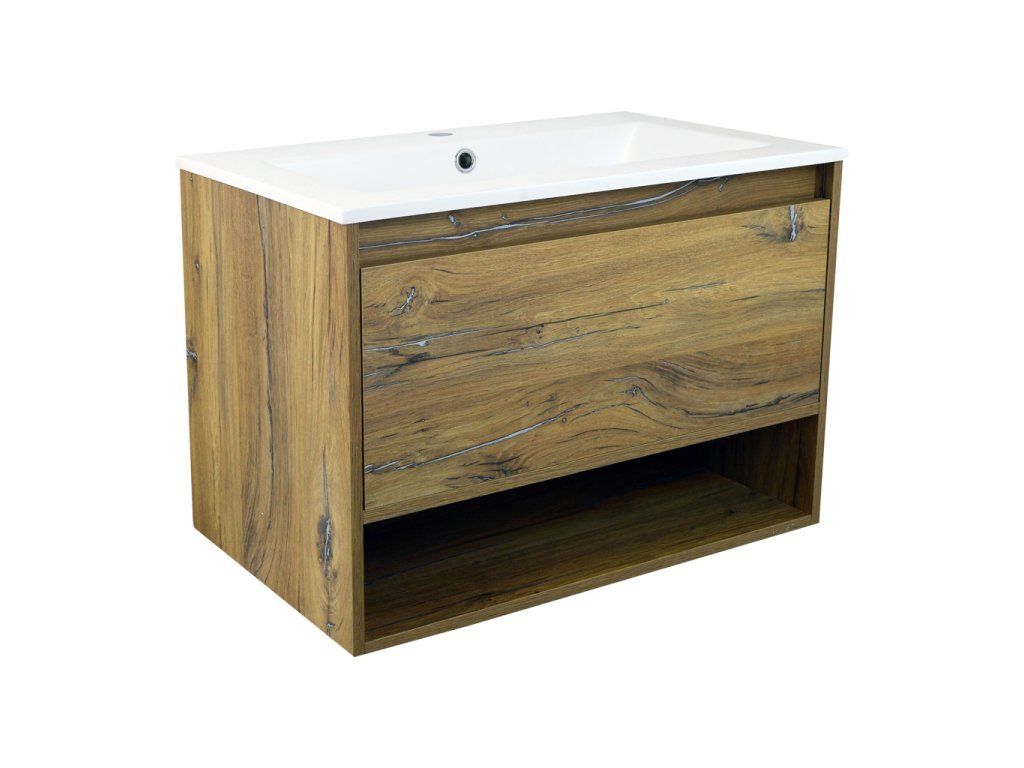 Skříňka s umyvadlem z konglomerátu Mateo 75 je určena k zavěšení na zeď pomocí rektifikačních závěsů. Součástí skříňky je umyvadlo z konglomerátu UM-NHR-75 s přepadem a otvorem pro montáž vodovodní baterie. Praktickým doplňkem je plastový organizér umístěný v zásuvce.