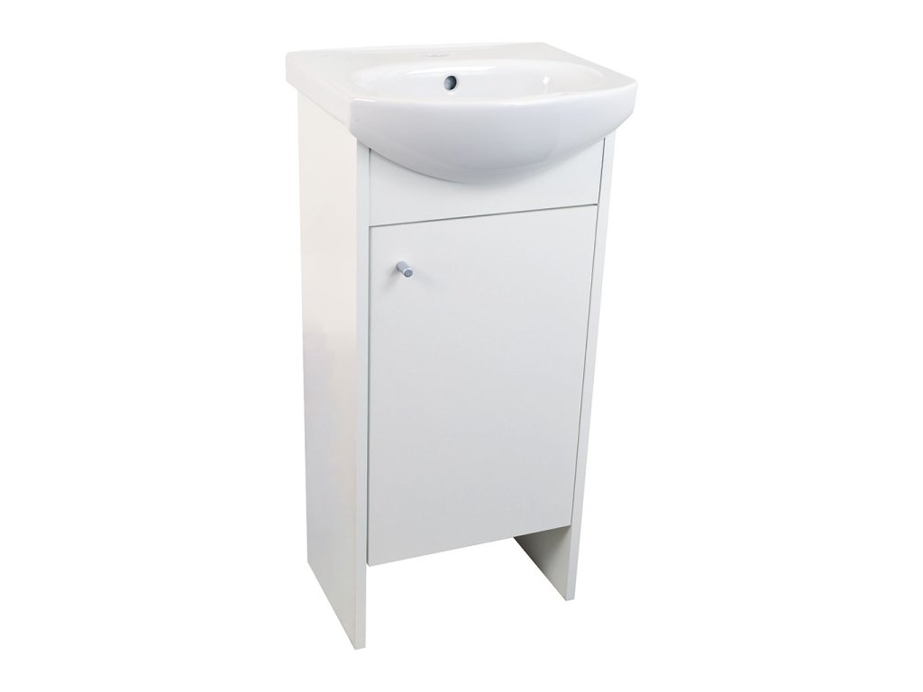 Skříňka s keramickým umyvadlem Zante 40 je určena k postavení na podlahu. Je doplněna keramickým umyvadlem Jika ROCA s přepadem a otvorem pro montáž vodovodní baterie.