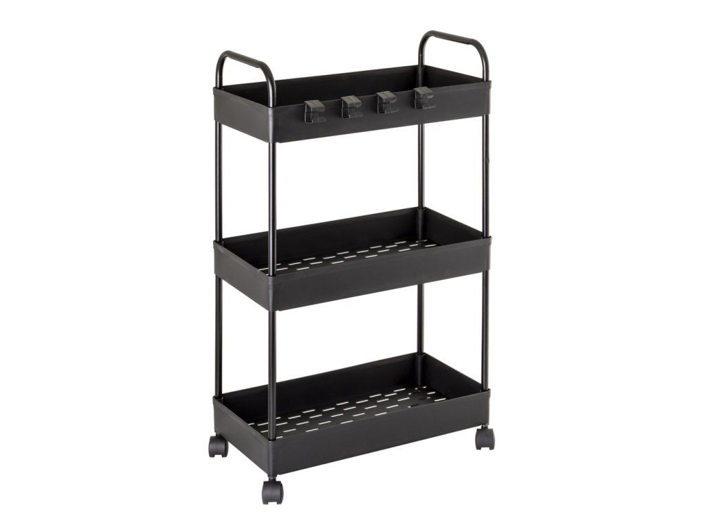 Černý koupelnový regál na kolečkách, vyrobený z odolného materiálu, je všestranným řešením, které bude perfektně fungovat v každé místnosti. Díky pevnému kovovému rámu zajišťuje police stabilitu a odolnost a namontovaná kolečka zaručují mobilitu, což usnadňuje jeho přesun v případě potřeby. Regálek, vybavený třemi košíky, umožňuje efektivně ukládat a organizovat předměty v koupelně, kuchyni nebo jiných prostorách. Navíc 4 praktické háčky, které lze libovolně připevnit a umístit na police, umožňují flexibilně přizpůsobit regál vašim individuálním potřebám. Montáž regálku je extrémně jednoduchá a nevyžaduje použití nářadí - stačí postupovat podle přiloženého návodu a spojit prvky sestavy.