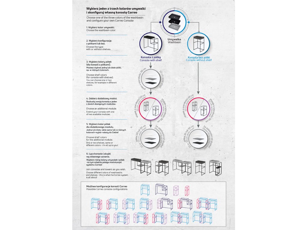Nakonfigurujte si vlastní sadu kombinací libovolných prvků a barev. Jednotlivé produkty je možné kombinovat dle vlastního uvážení a fantazie, což umožňuje dosáhnout nejrůznějších stylistických výsledků a dává vám možnost okamžitě proměnit vaši koupelnu. Speciální design užšího sloupku umožňuje jeho zavěšení i na zeď. Diverzifikované rozměry, široká škála odstínů a klasický, společný design pomohou vytvořit jedinečnou kompozici.