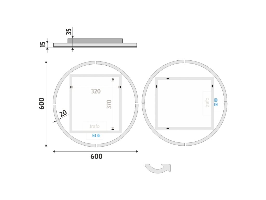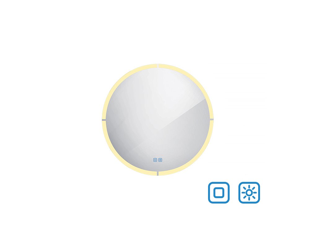 Kulaté bezrámové zrcadlo a s celoobvodovým podsvícením pro dokonalé a rovnoměrné osvětlení.Zrcadlo se ovládá dvěma dotykovými podsvícenými senzory, které umožňují změnu barvy podsvícení, nastavení intenzity osvětlení (stmívání) a disponují paměťovou funkcí pro uložení posledního nastavení. Kromě toho lze zrcadlo ovládat i pomocí nástěnného vypínače, což zvyšuje jeho flexibilitu a pohodlí použití.