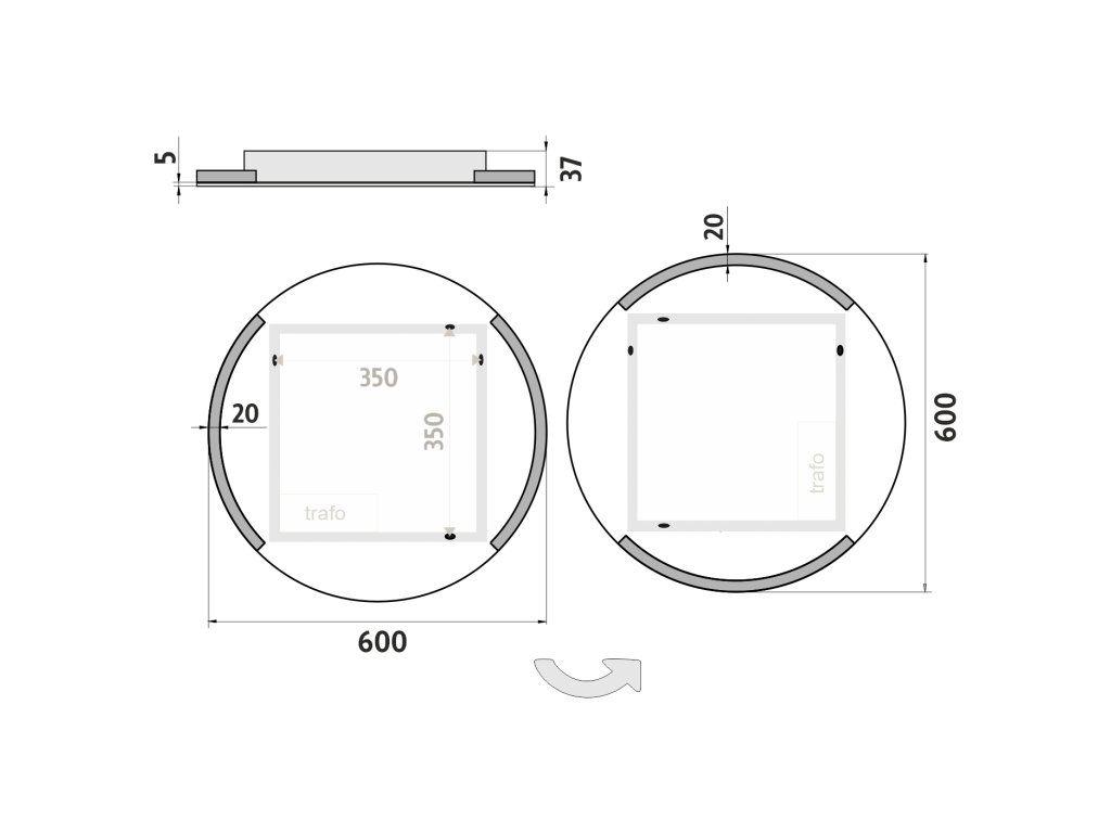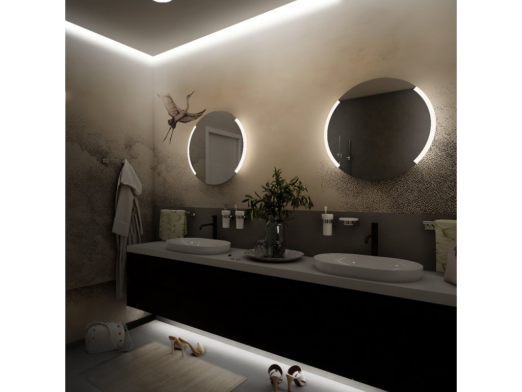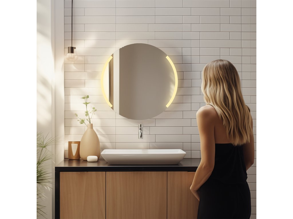 Kulaté bezrámové zrcadlo a s podsvícením ze stran pro moderní a elegantní vzhled.Zrcadlo bez integrovaného vypínače je určené k připojení a ovládání nástěnným vypínačem. Barva podsvícení zrcadla je pevně nastavena.