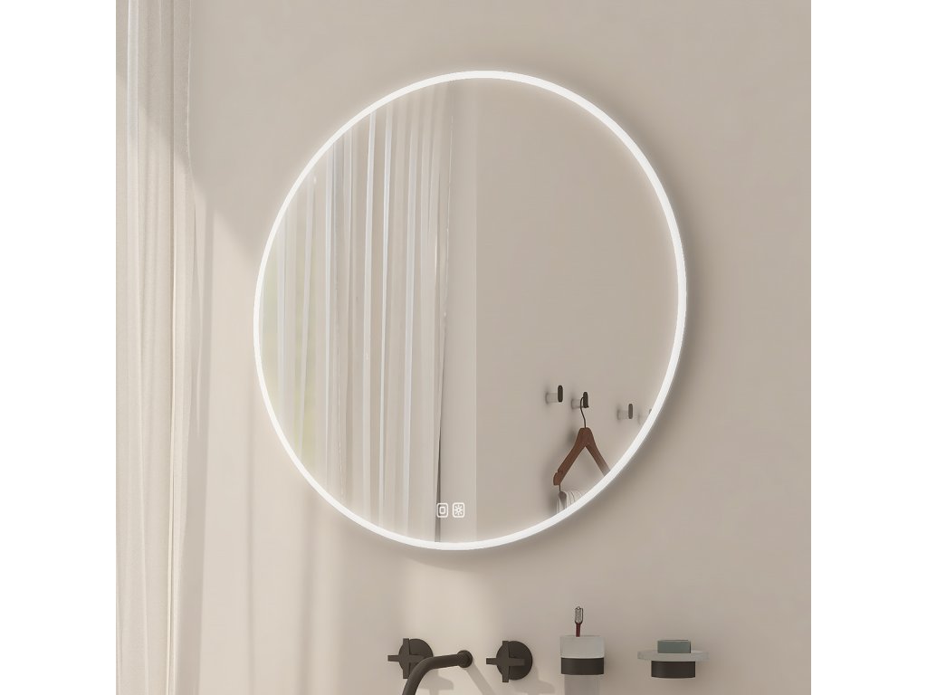 Kulaté zrcadlo do koupelny 70 cm s osvětlením, dotykový spínač je skvělým doplňkem do koupelny. Zrcadla do koupelny NIMCO vynikají kvalitním zpracováním a moderním designem. Svícení za použití akrylátového skla, plexiglass. Konstrukce pro uchycení zrcadla je z hliníkového rámu 32x19 mm, sklo zrcadla má tloušťku 5 mm. Průměr zrcadla 600 mm. Led pásky jsou ukryté v PVC tubě za sklem zrcadla. Světlo prochází skrz sklo a odráží se po celém obvodu zrcadla, tím vytváří i zajímavý světelný efekt na stěně. Připojení 220-240 V. Ochrana IP 44. Zapínání / vypínání / ovládání je pomocí dotykového senzoru s pamětí. Možnost nastavení barevné teploty svícení a intenzity svítivosti. LED čipy mají vysoký výkon. Životnost LED diod je až 50 000 hodin. Součástí zrcadla je kabelová spojka, IP 44.Koupelnové podsvícené KULATÉ LED zrcadlo