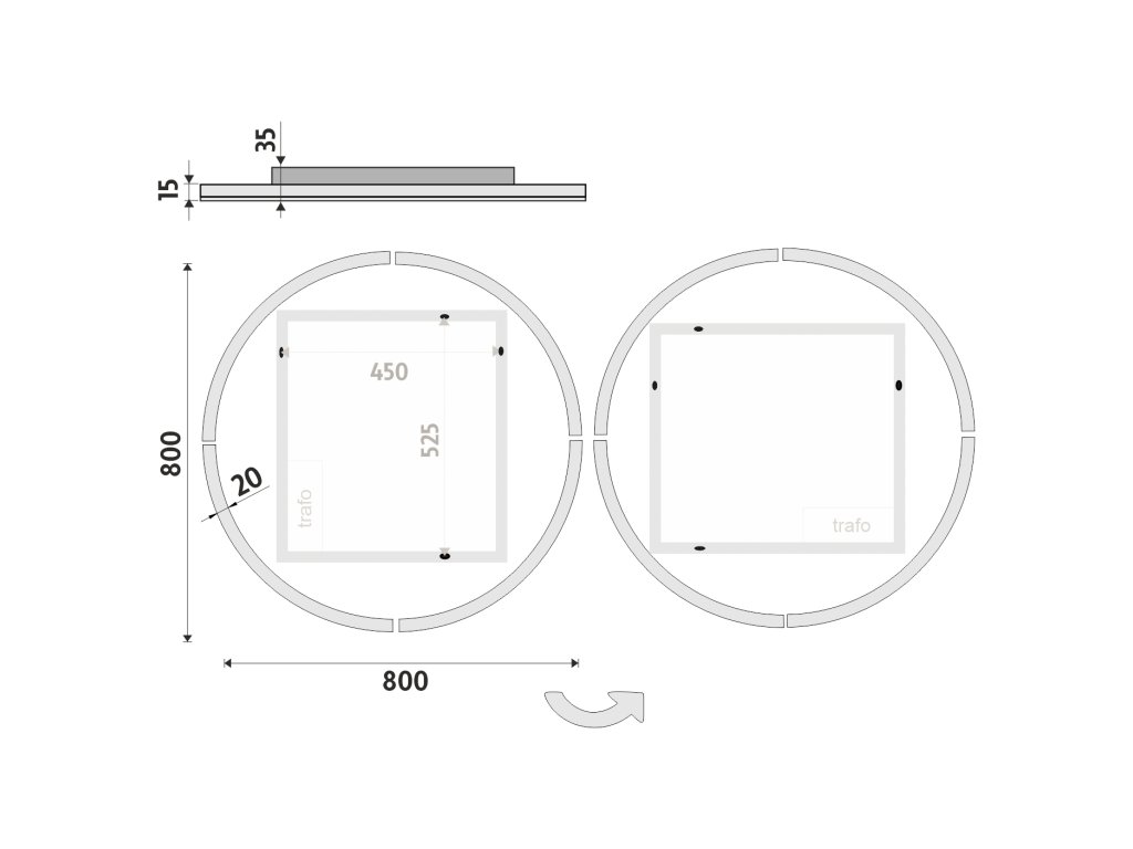 Kulaté bezrámové zrcadlo a s celoobvodovým podsvícením pro dokonalé a rovnoměrné osvětlení.Zrcadlo bez integrovaného vypínače je určené k připojení a ovládání nástěnným vypínačem. Barva podsvícení zrcadla je pevně nastavena.